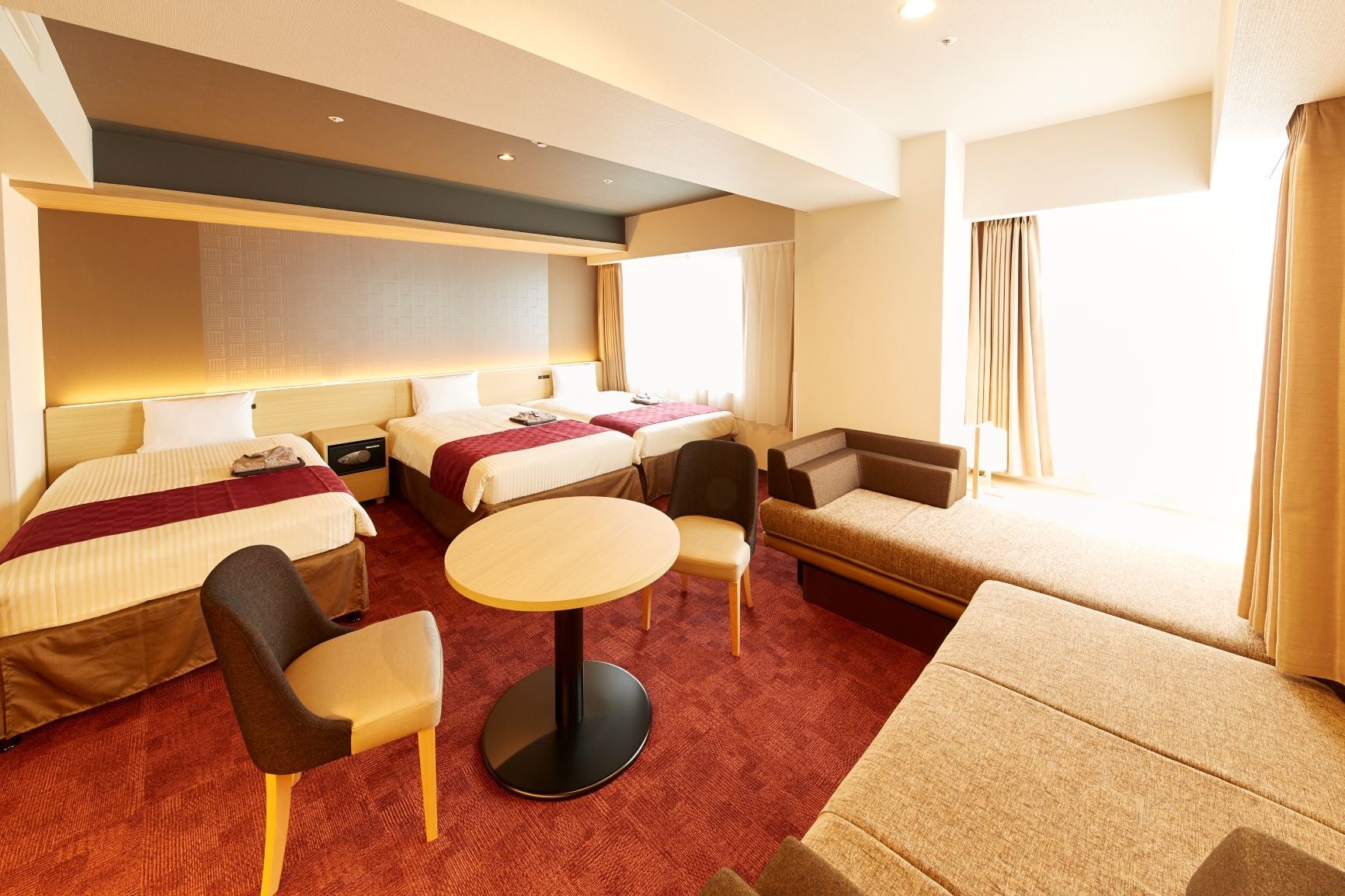 地上8階地下1階建ての全194室で、3~4名まで宿泊できる客室を中心に全9タイプのゲストルームがあり、ペットの犬と泊まれるドッグフレンドリールームもあります。また、最上階にある42m²のプレミアツインにはミニキッチン(コンロなし)もあり、最大5名様までご宿泊いただけますので、家族旅行や、グループ旅行に最適です。地下1階にはチェックイン後から深夜1時まで、朝は6時からチェックアウトの10時までご利用いただける大浴場もございます。開業記念スペシャルプライスもありますので、詳細は公式サイトをご確認ください。
