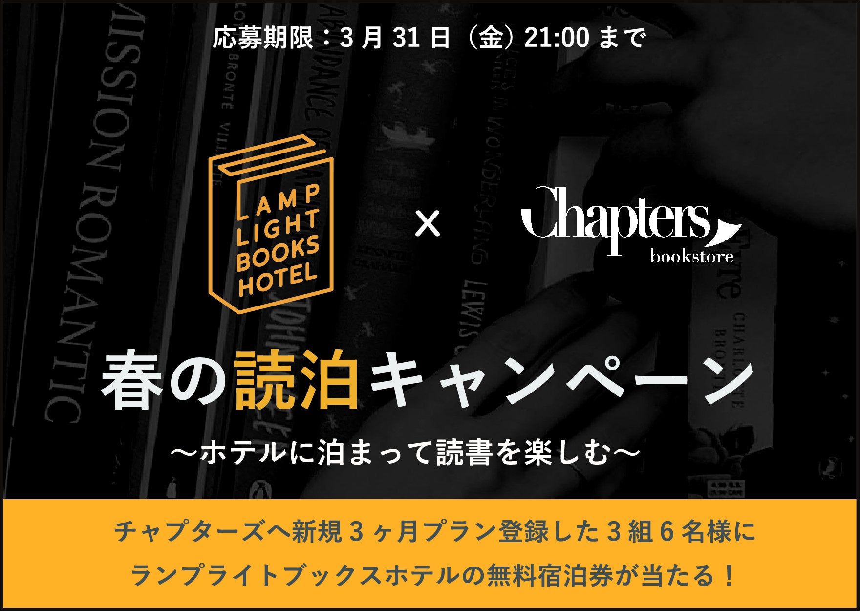 ~チャプターズ3ヶ月プランに登録で、ランプライトブックスホテルの無料宿泊券が当たる~