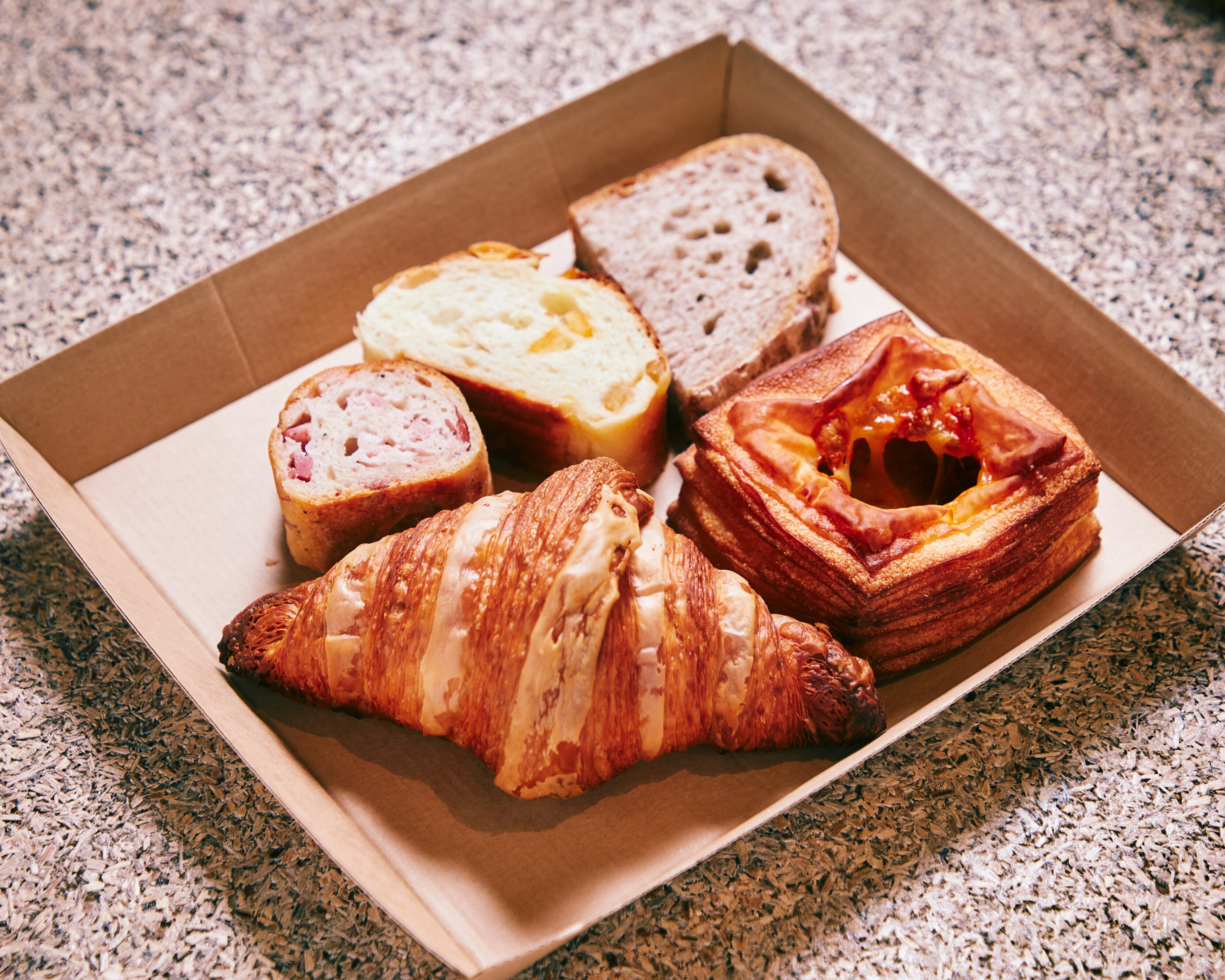 焼きたてのパンやデニッシュ、軽いおつまみやスナック類を常時ご用意。こだわりのパンは時間ごとに焼き上げており、時間帯により異なる種類を味わえます。